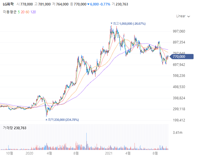 2020년 4월쯤 매수했다면 정말 좋았겠지만, 2021년 초에 매수했다면 주가는 지지부진한 모습이다. LG화학은 무슨 일이 있었을까?
