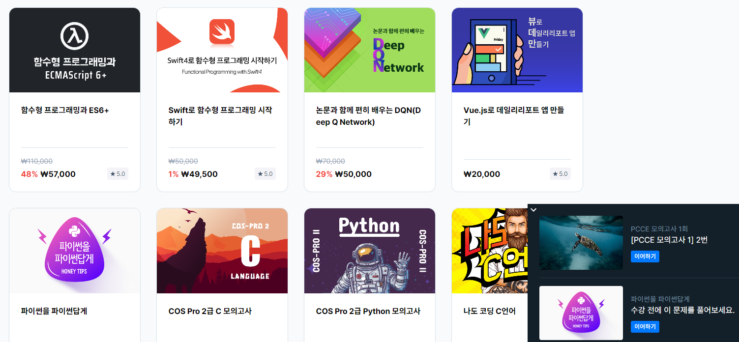 4. 문제 풀이(실습)는 빈칸을 채우거나 특정 부분의 코드를 작성해 볼 수 있게 되어 있어 초보에게 좋다.