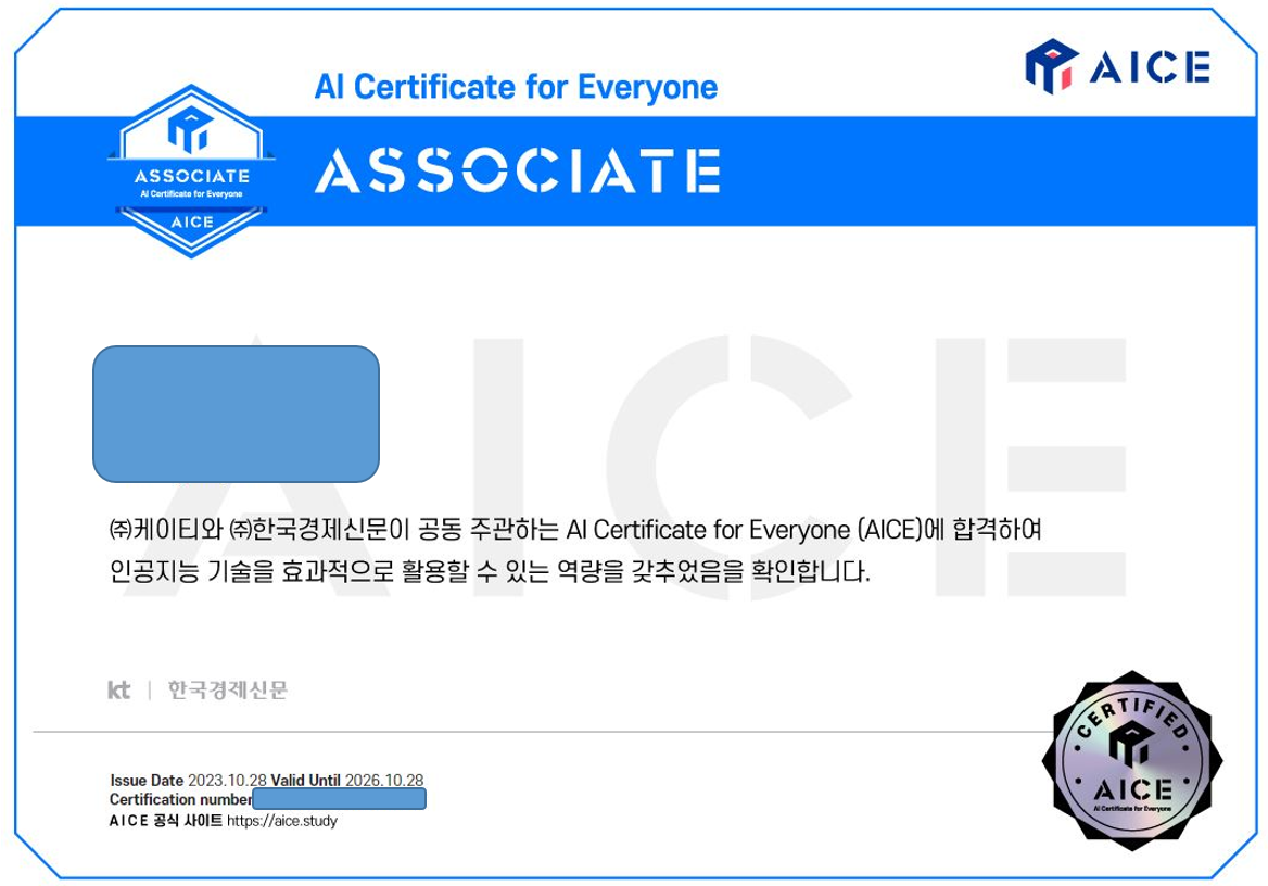 aice 사이트에서 온라인 종합 강의를 듣고, aice associate 시험을 봤다.