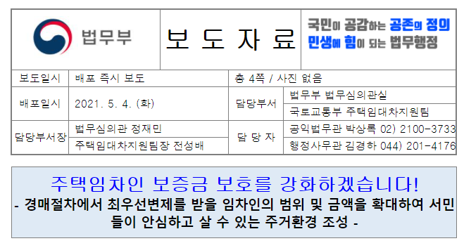 변경 취지는 법무부 보도자료를 참고하자. 주택임차인 보증금 강화를 목적으로 한다고 하는데 뉴스 기사를 보다 보면 부작용을 우려하는 목소리도 있다.