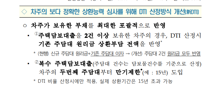 참고로 위에서 설명한 DTI는 2017년 10월 24일 발표된 가계부채 종합대책에 신DTI로 소개된 내용이다. 기존의 DTI 산정방식을 변경해서 규제를 강화시킨 내용으로 기존 DTI와 구분하기 위해 신 DIT로 불렸으나 지금은 너무 오래된 내용이라 다들 그냥 DTI라고 부른다.