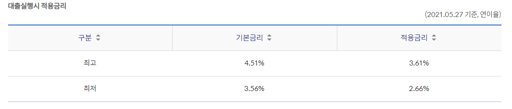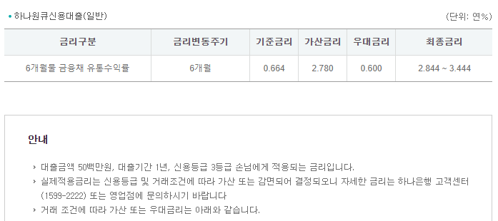 그리고 좀 더 아래에 이런 문구가 나온다. '... 최저금리는 시장 및 고객님의 신용등급, 대출조건 등에 따라 변경될 수 있습니다.' 결국 신청하면 다른 값이 나올 수도 있다는 말이다.