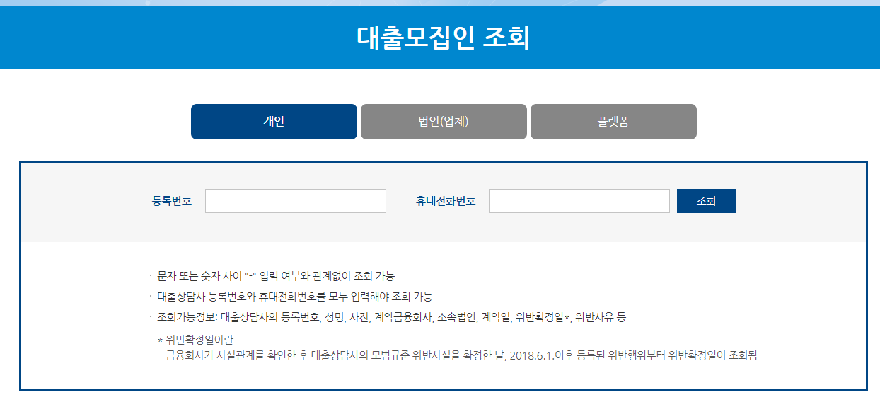마지막 방법은 대출모집인을 통해 대출을 상담하고 신청하는 것이다. 대출모집인은 은행과 협약을 맺고 대출모집업무를 대신 해주는 사람이다. 소속된 별도의 회사가 있고, 은행 직원은 아니다. 대출모집인은 금융업협회에 등록을 하도록 되어 있기 때문에 대출모집인 포탈사이트에서 신원확인이 가능하다. 대출모집인에게 명함을 달라고 하여 명함에 적힌 등록번호와 휴대전화로 확인 가능하다.