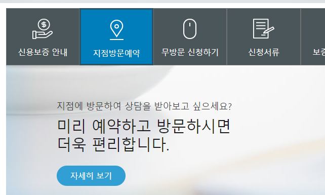 그냥 막 찾아가지 말자. 고객센터 1577-6119 전화로 예약을 하거나, 서울 신용보증재단 홈페이제에서 지점 예약 방문을 통해 예약을 하고 나서 방문하자. 아래 링크로 접속해서 첫 화면에 보이는 지점 방문 예약을 누르고 자세히 보기를 클릭하자. PC에서만 예약이 가능하다.