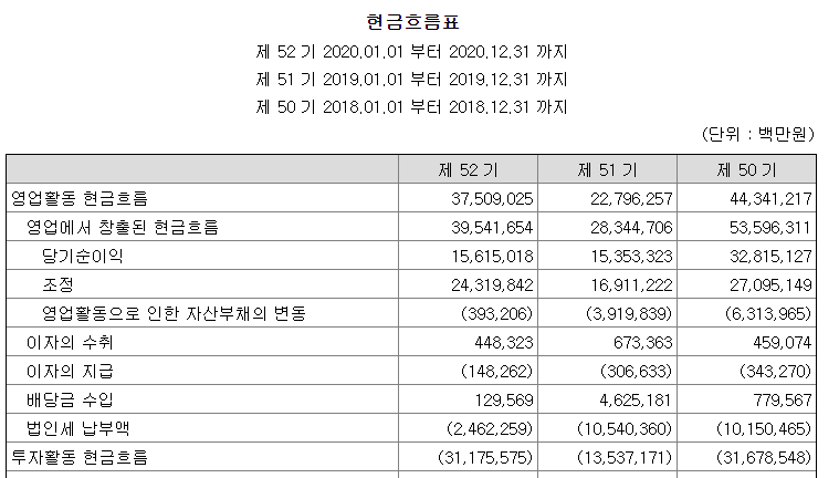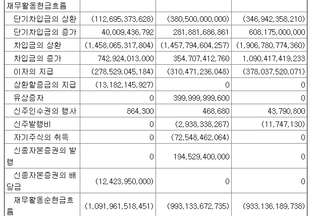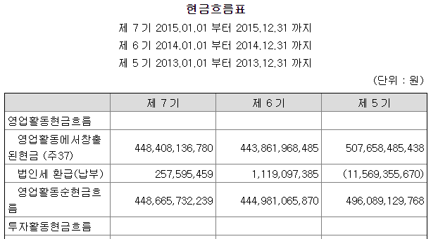참고로 한진해운은 이자의 수취 항목을 투자활동 현금흐름 항목에 포함시켰다.